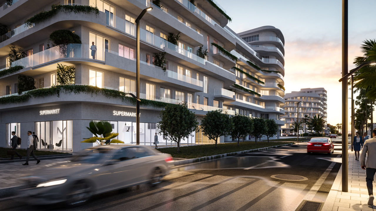 On the territory of this town, there are residential apartments with swimming pools, business zones, a supermarket, cafes and bars, as well as entertainment centers and studios.